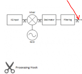 - Tap into the SDR# IQ stream, process as needed to get a lower SR stream (I am using 48000 for audio but the signal is 1200 bauds so a lower SR would be better actually processing wise), for the signal band I need (regardless of the devices attached to the SDR#).